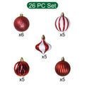 26 pcs Broad Pointed Red White themed Christmas Balls tree hanging, XMAS Decoration set.