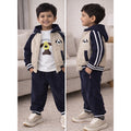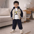 3 Pcs Set, Navy Beige Puffer Jacket, T-shirt & Tracksuits set for Kids, Fleece Winterwear