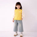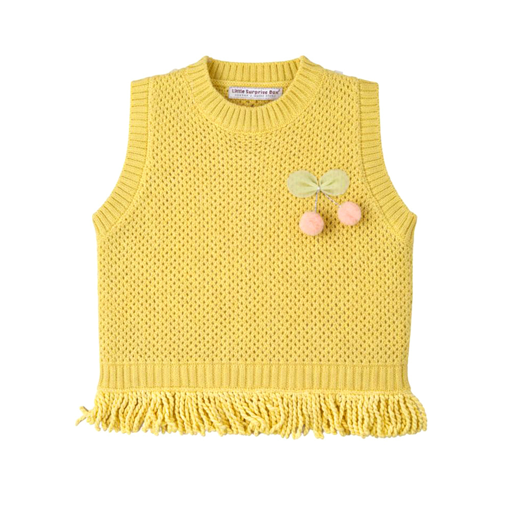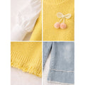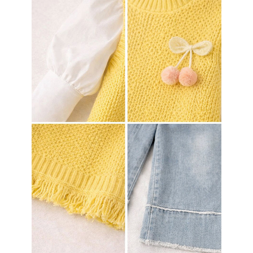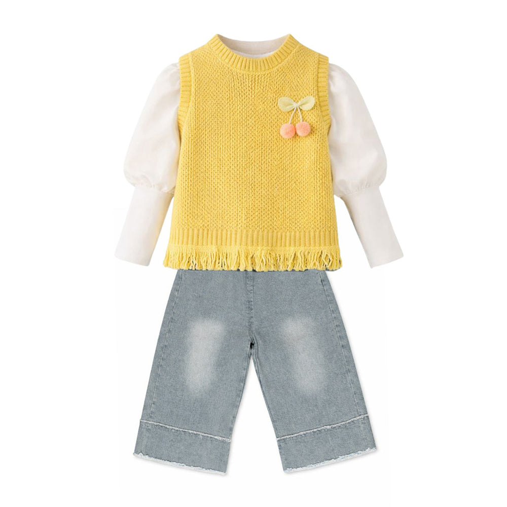 3 Pcs Set,Yellow Pom-pom Knitted Vest,T-shirt & Denims for Kids