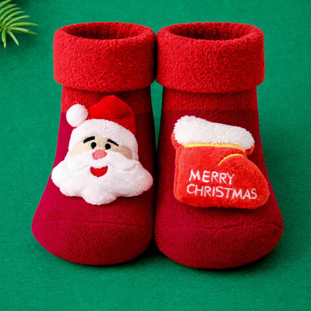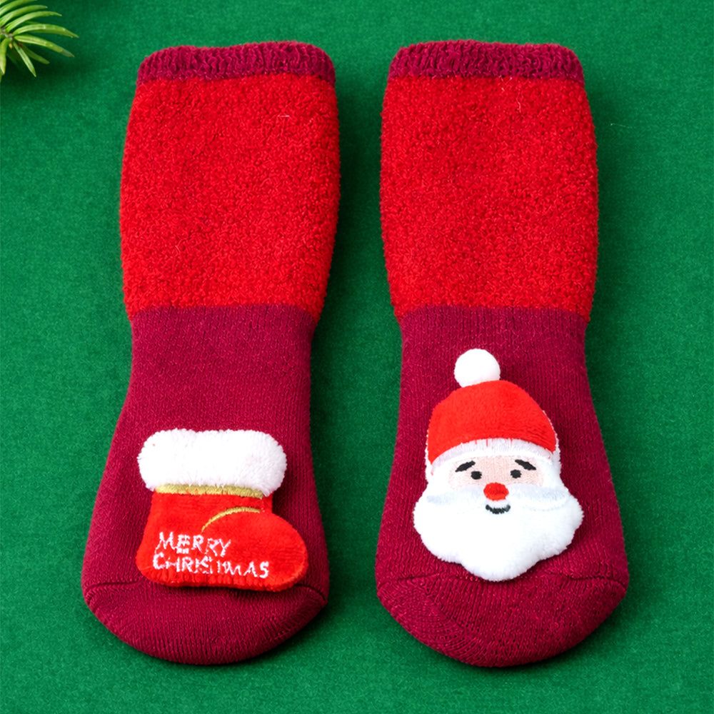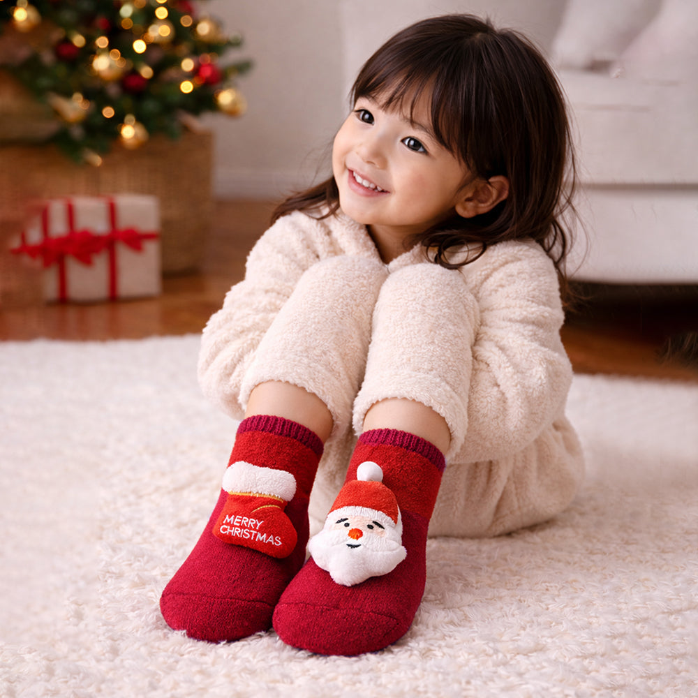 3D Red Santa & Stockings Christmas Themed Ankle Length Socks For Kids
