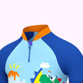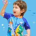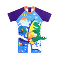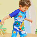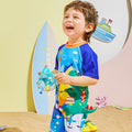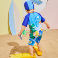 3d Tail Blue Surfing Dino Kids Swimwear with matching Swim Cap