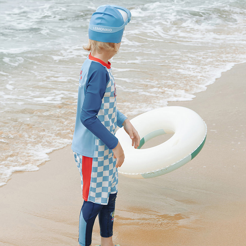3pcs Blue Checkered Swimsuit for Boys with UPF 50+.