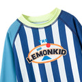 3pcs Bold Blue Green Stripes Swimsuit for Boys with UPF 50+.