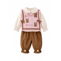 3pcs set,Pink Brown Knitted Vest,Cream Shirt,& Pants partywear for Kids