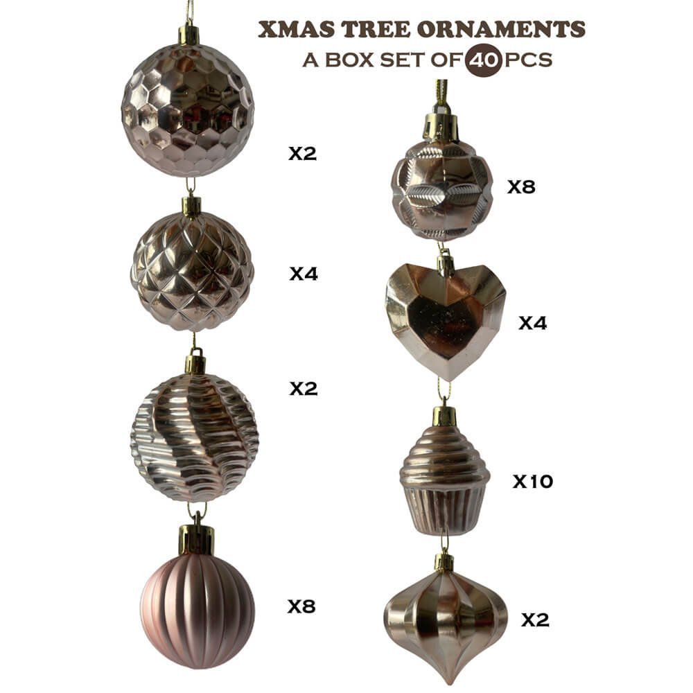40 pcs, Rose Gold Theme Hanging Christmas Tree Ornaments