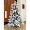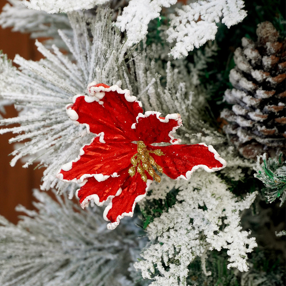 5.9 feet Bushy Long Snowy Leaves Xmas Tree with 8 free Wired Red Poinsetta Flower Tips, 180 cms with 550 Branch Tips ,christmas Tree Décor