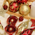 2. Poinsettia Red & Gold Themed Xmas Ornaments: This set includes 70 beautifully crafted ornaments inspired by classic Christmas florals and elegant festive styling. The collection features glossy red and gold balls, glittered poinsettia flowers, sculpted long ornaments, patterned baubles, swirl designs, textured spheres, and more. Each piece is thoughtfully designed to bring warmth and richness to your Christmas tree.