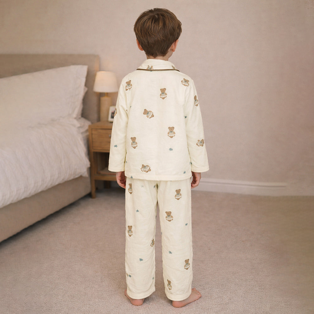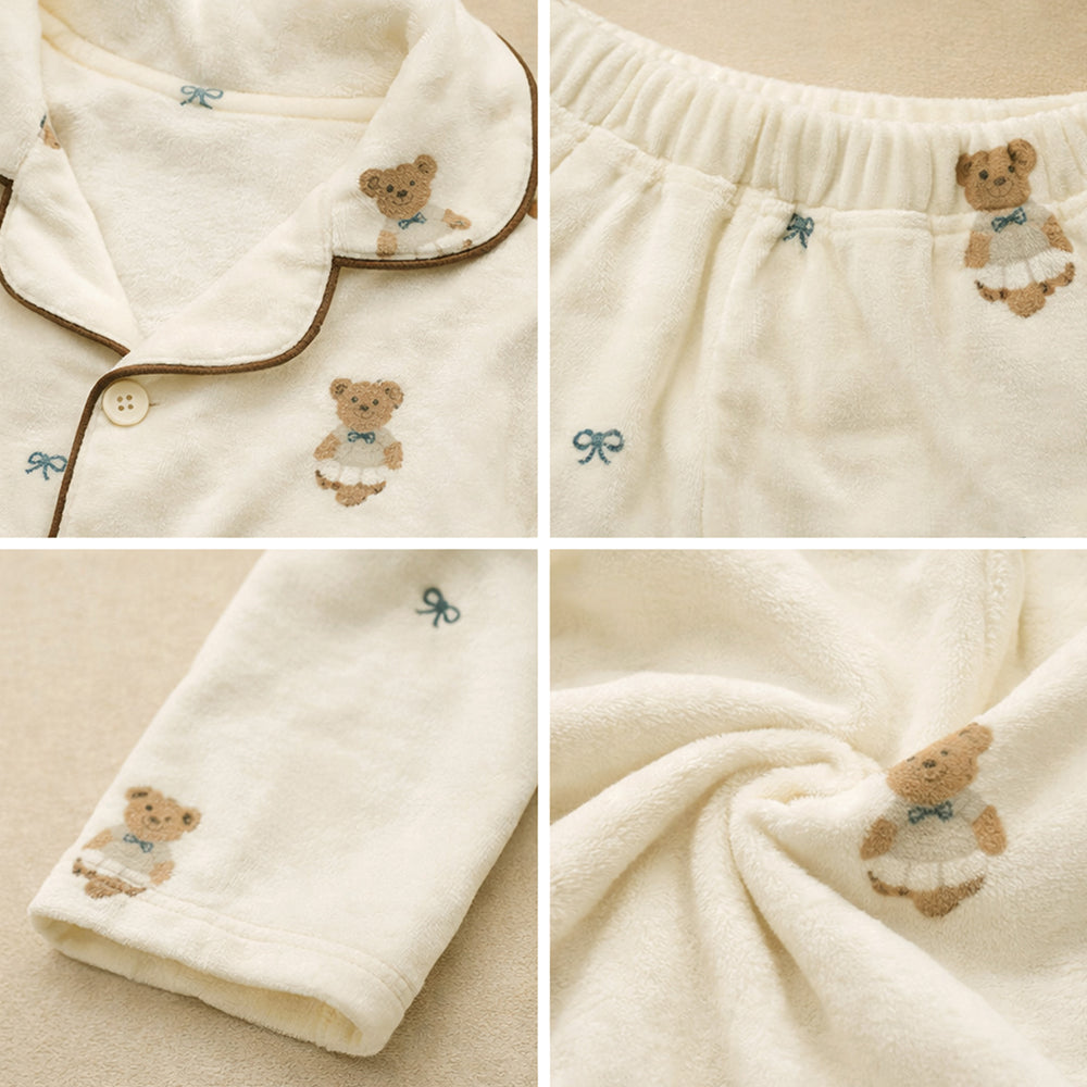 Bear with Bow,Soft Fleece Winter Nightsuit Set for Kids & Teens
