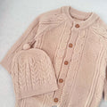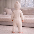 Beige Cable Pattern Full Sleeves Jumpsuit Romper with Cap for Tiny Toddlers