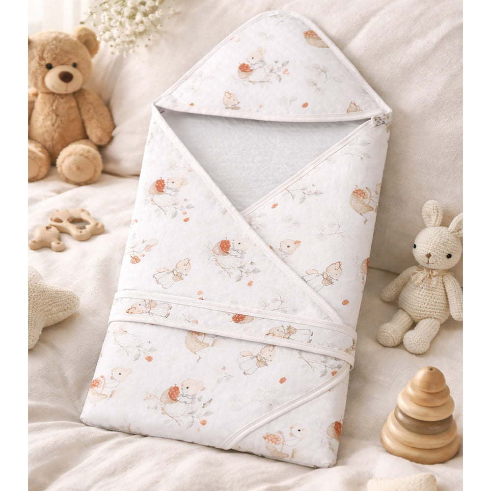 Berry Wooland Theme Soft Quilted Cotton Winter Wrapper with Hood for Newborn & Infants with Free storage Pouch