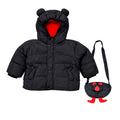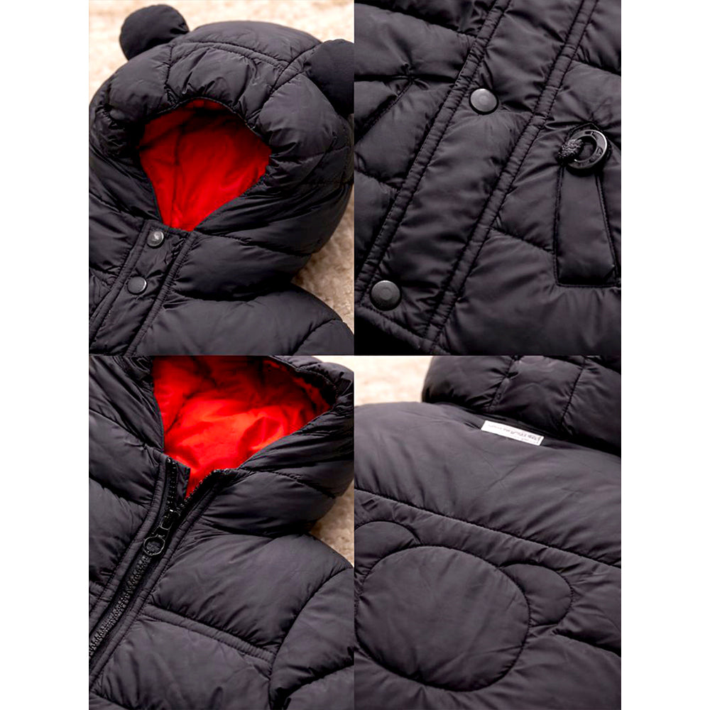 Black 3D Ears Teddy Themed Quilted Hooded Winter Jacket for Kids