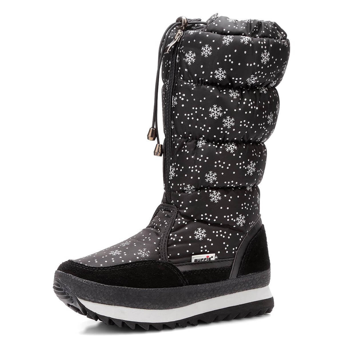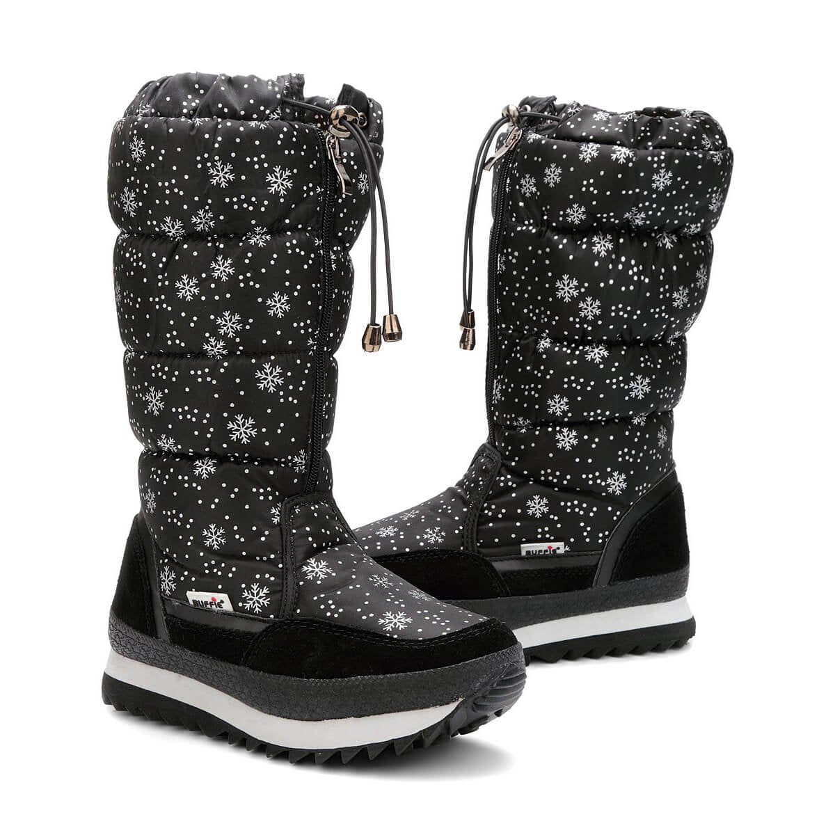 Black and Silver Snowflake Women Winter Snowboots