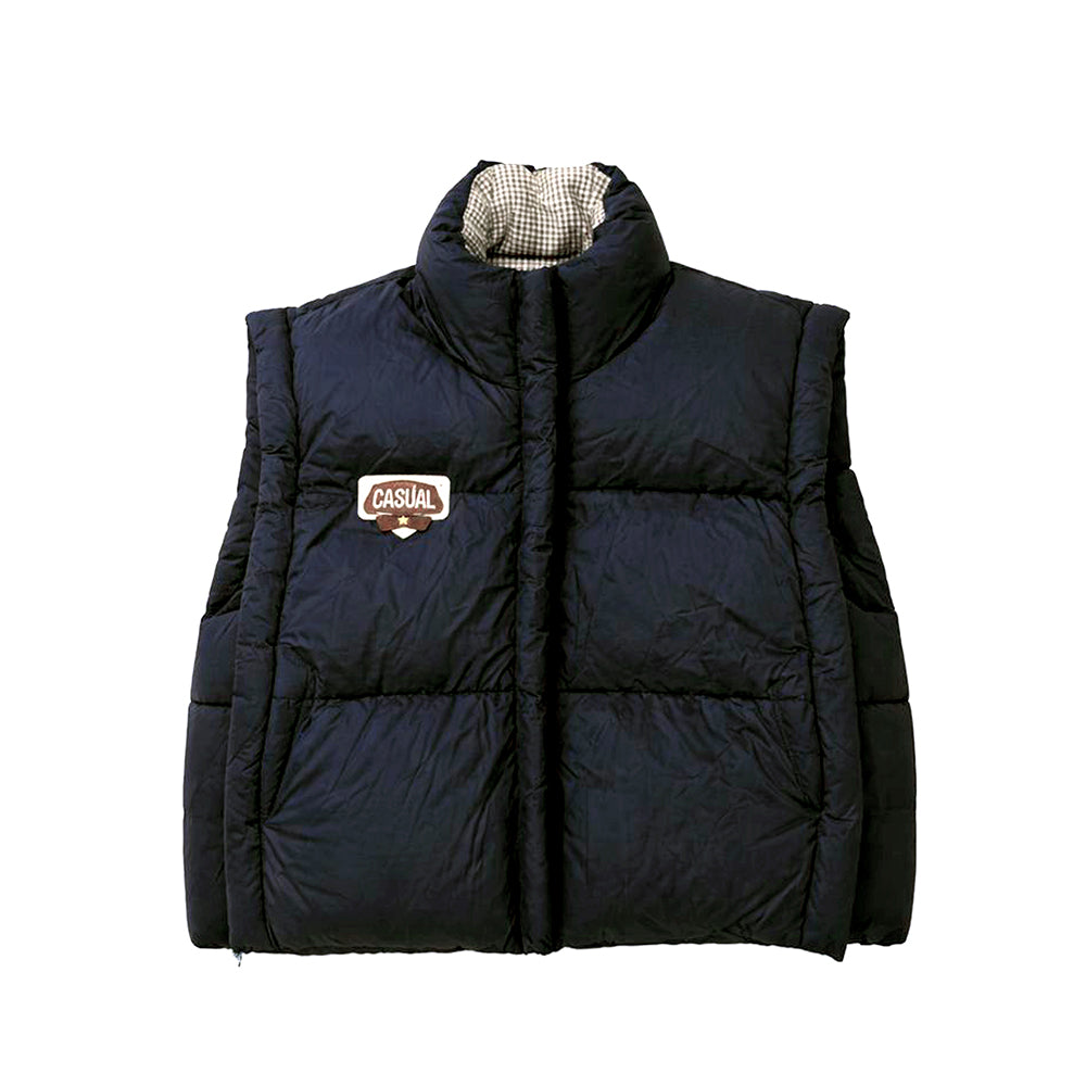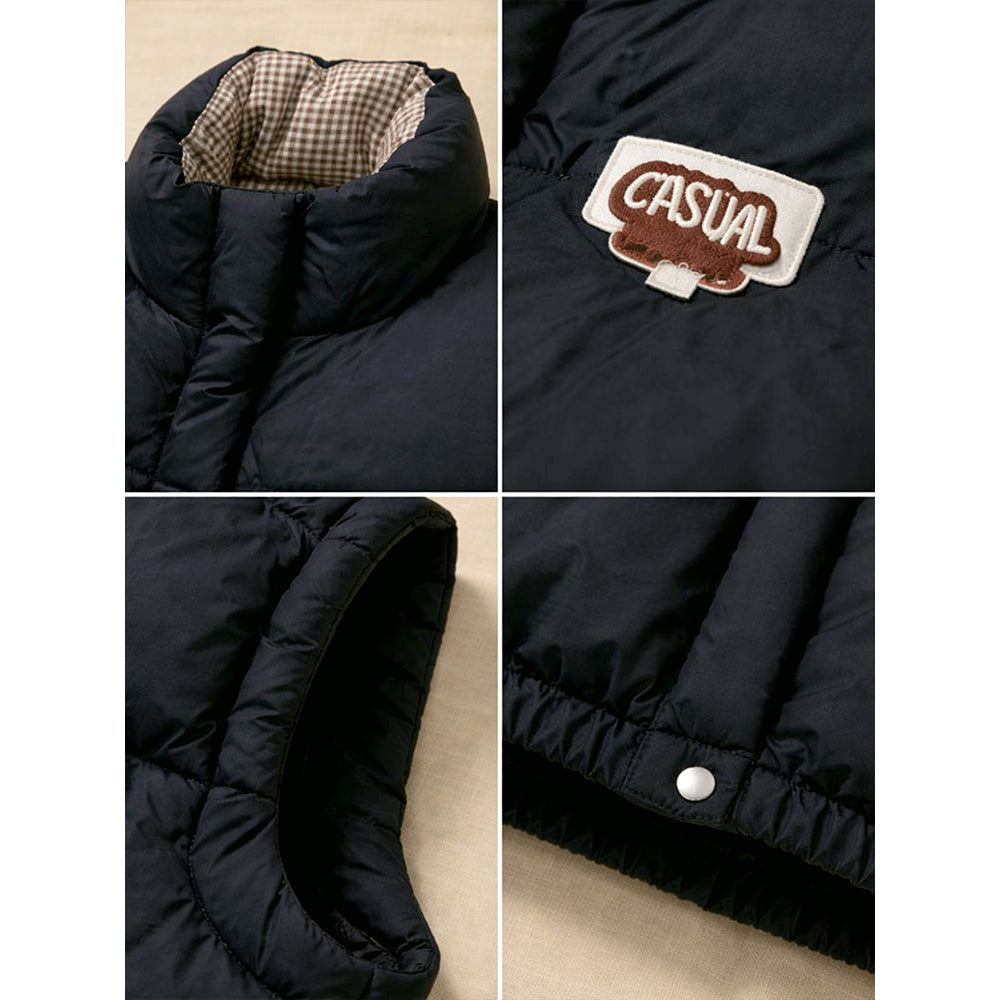 Black Checks Collar Quilted Sleeveless Winter Vest Jacket for Kids