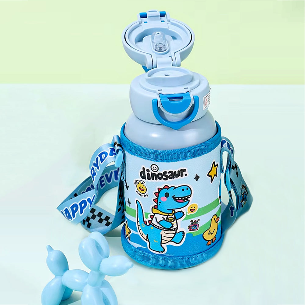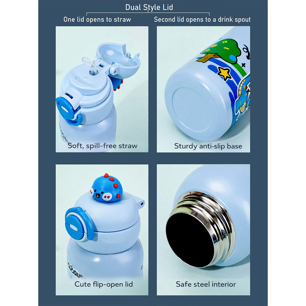 Blue DIno 3d Face Lid with Matching Cover Stainless Steel Water Bottle for Kids,550 ml