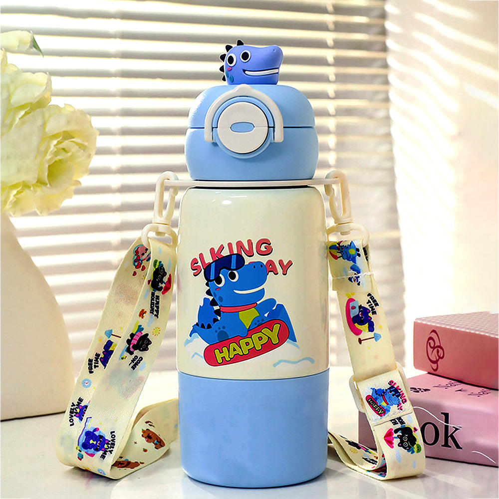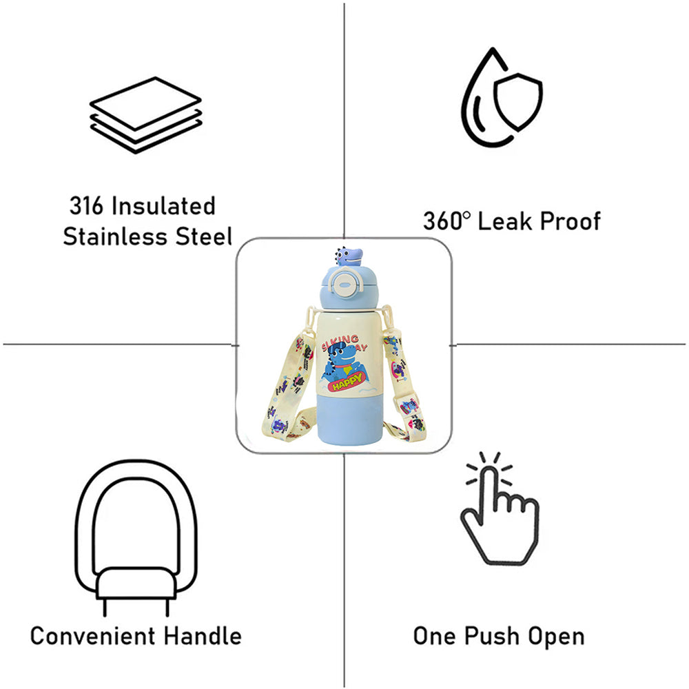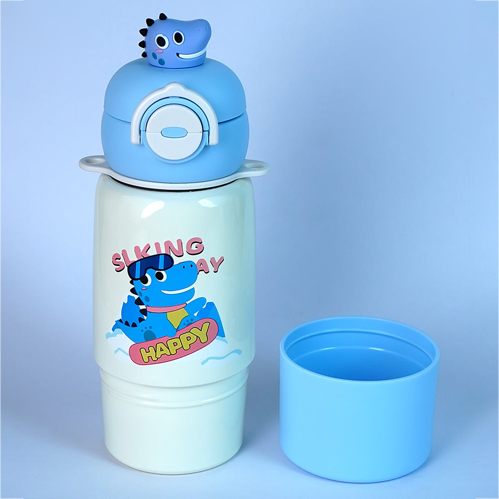 Blue Dino Bottomlid Series, Stainless Steel Kids Water Bottle , 480ml
