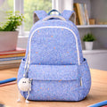 1. All-Over Print Backpack with Keychain: This stylish school backpack features a playful all-over blue doodle print that adds a fun and creative vibe along with a detachable plush pom-pom keychain enhances its charm, making it a favourite among kids.