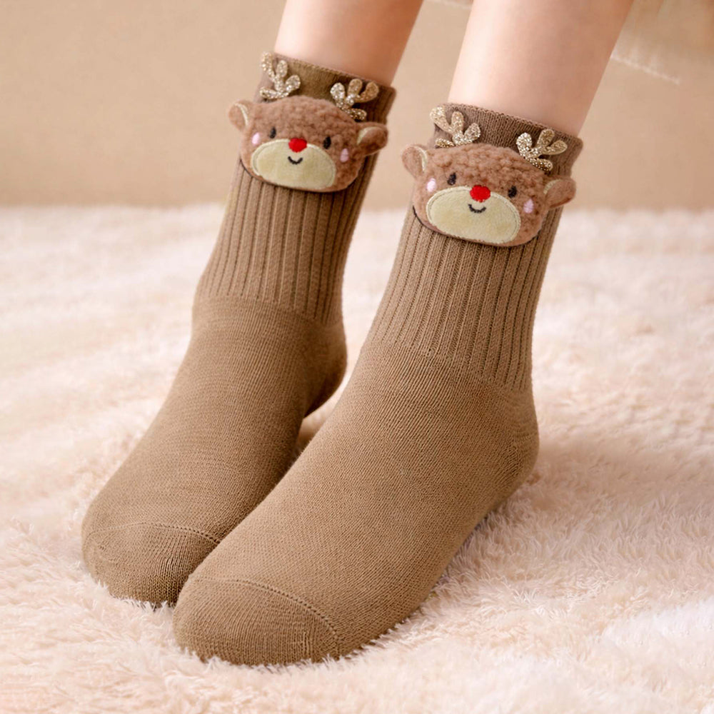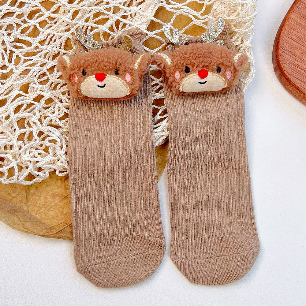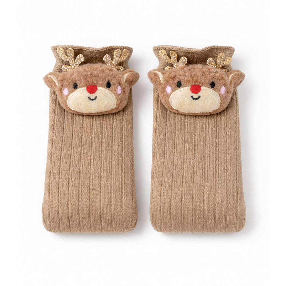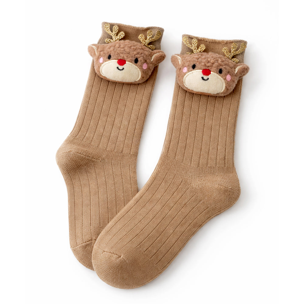 Brown 3D Baby Reindeer Christmas Themed Ankle Length Socks For Kids