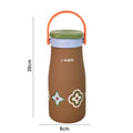 1. Insulated with Filter Thermos: A sleek and stylish bottle featuring a warm brown base adorned with soft pastel floral, geometric designs—stylish, minimal, and perfect for both kids and adults. Comes along with a detachable internal filter/infuser ideal for tea leaves, fruit infusions, herbs, or preventing ice and fruit pieces from coming through while drinking. Hence is useful for kids as well as adults.