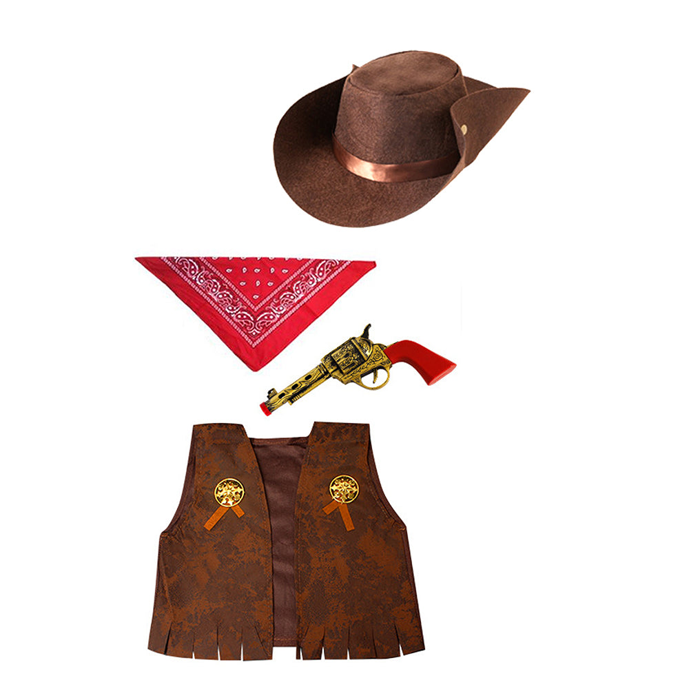 3.Quality: Made of good quality cloth, very comfortable and breathable to wear. Designed for kids to play the role of a naughty cowboy. Suitable for boys.