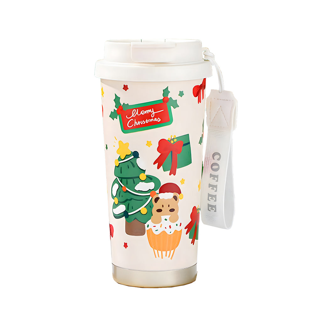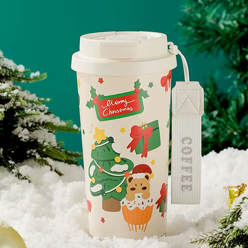 1. Christmas Designed Mug: Celebrate the magic of Christmas with this adorable Christmas Tree & Bear Cupcake insulated travel mug, featuring a decorated festive tree, a cute little bear peeking out of a cupcake and a bright “Merry Christmas” label. A joyful and stylish Christmas water bottle for kids and adults who love festive drinkware.