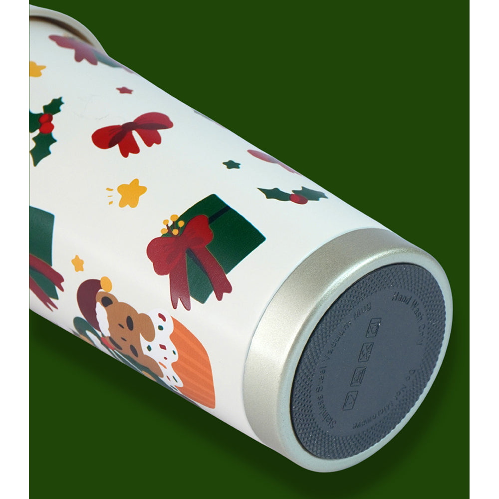 Christmas Tree & Bear Cupcake, xmas themed, stainless steel Coffee/Water Tumbler Bottle, 500ml with free cleaning brush