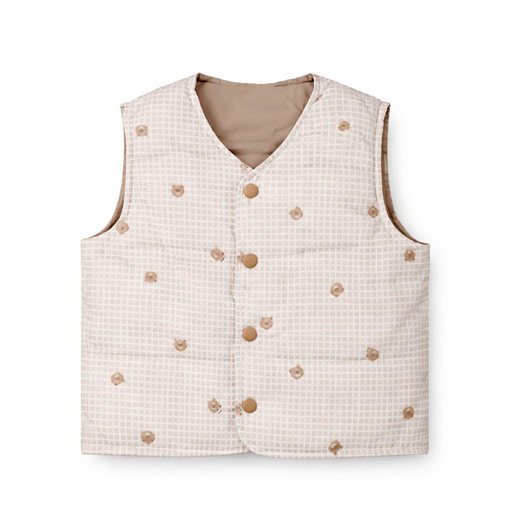 Cream Checks Teddy Reversible Sleeveless Winter Jacket for Kids