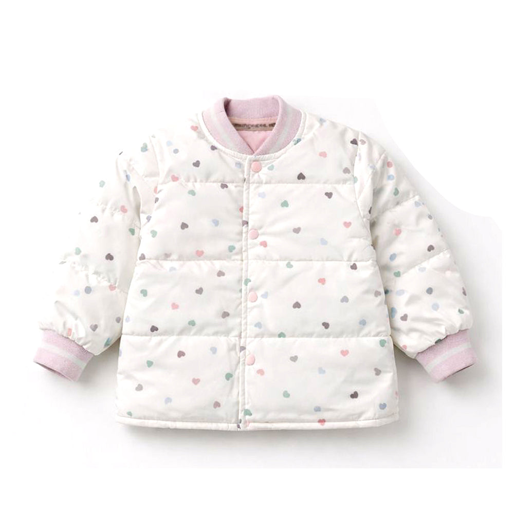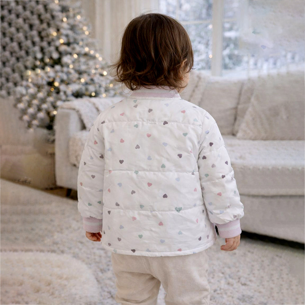 Cream Colorful Mini Hearts Winter Jacket for Kids