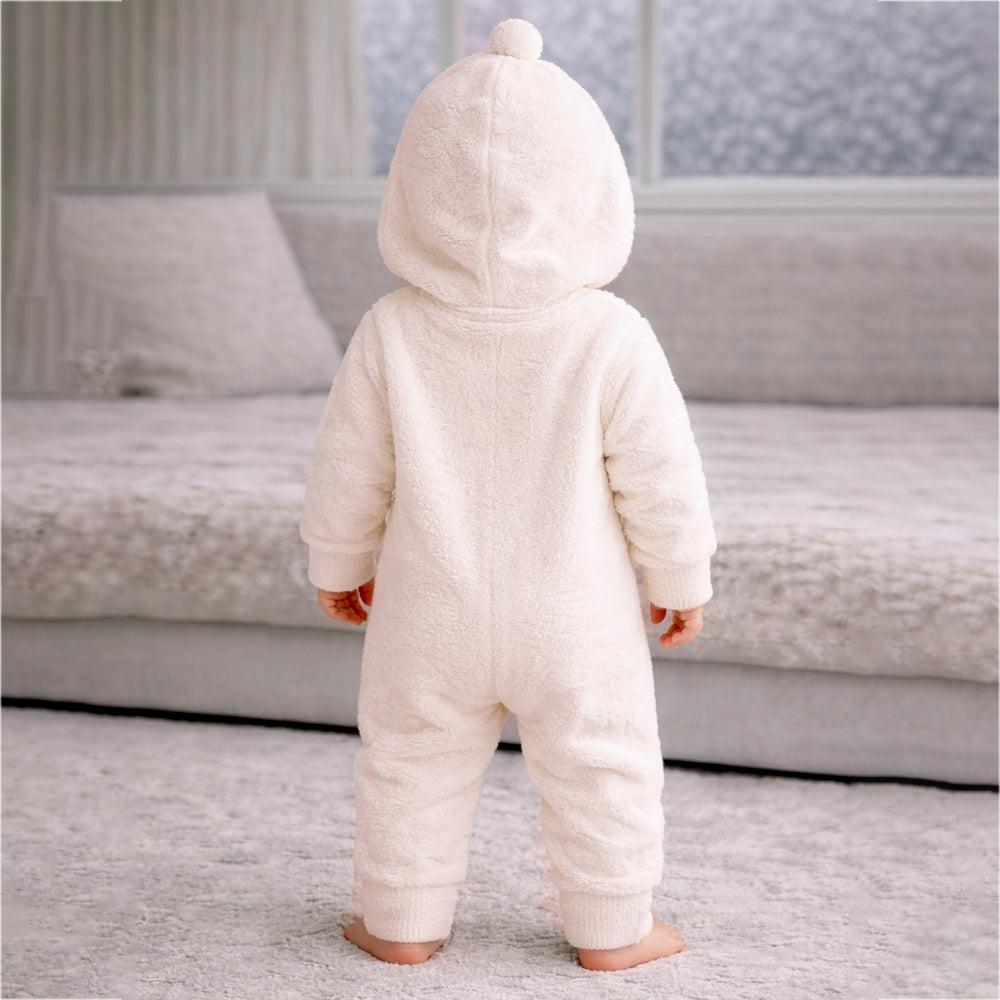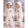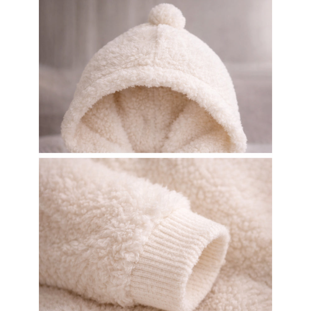 Cream Furry Teddy Full Sleeves Jumpsuit Hoodie Winter Romper for Tiny Toddlers
