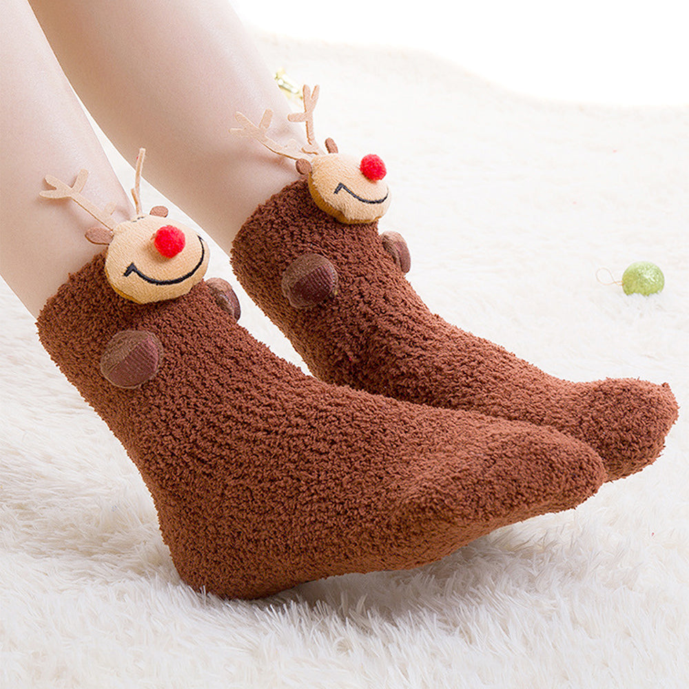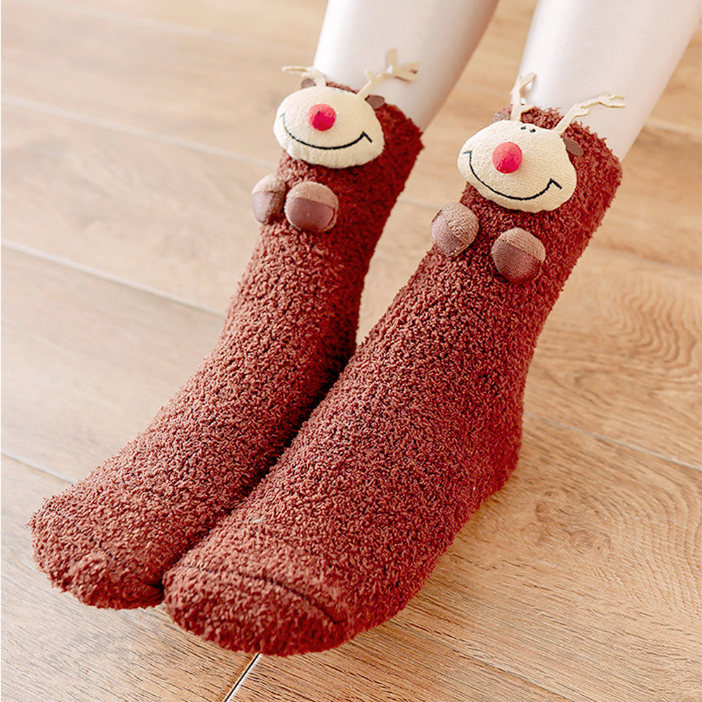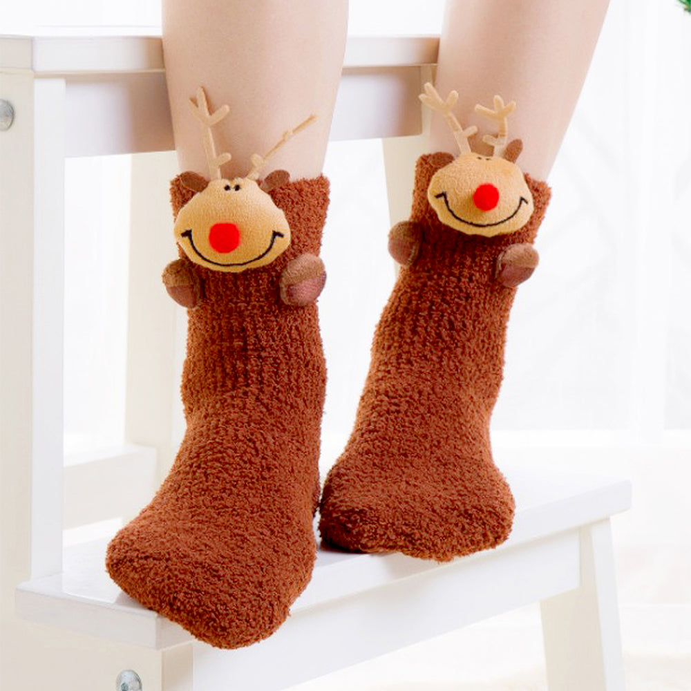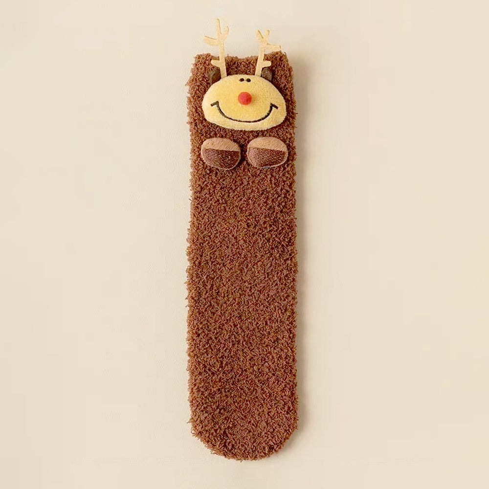 Dark Brown Reindeer -Xmas Tree Theme Woolen Christmas Socks For Kids