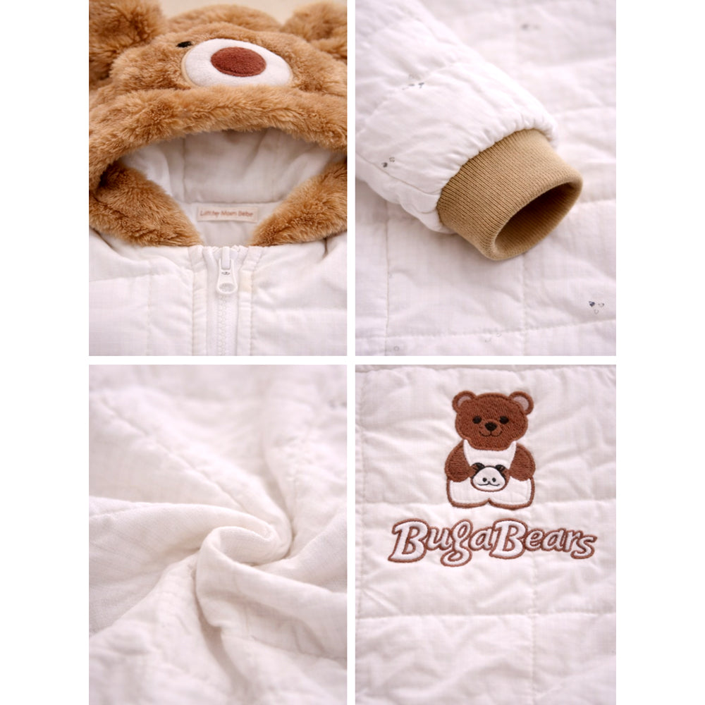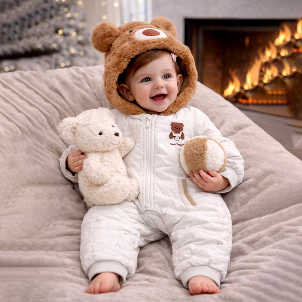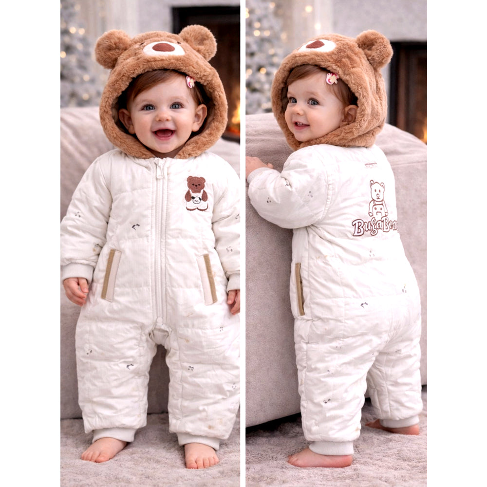 Furry Bear Winter Full Sleeves Jumpsuit Hoodie Romper for Tiny Toddlers