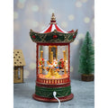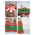 2. Details: The inside of this piece comprises of santa, snowman and a little boy sitting on the carousel horse and enjoying the ride. Featuring intricate detailing, vibrant colors, and rotating figures, this carousel is illuminated with warm LED lights to create a magical holiday ambiance.