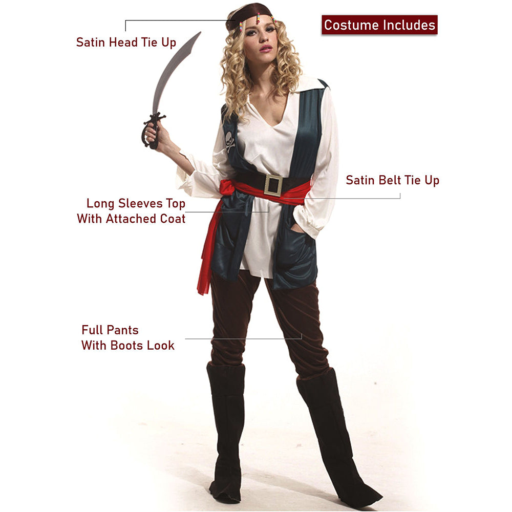 1.Design: This stunning Pirate themed halloween costume for adults is an excellent halloween party costume dress up.The different look makes you stand out from the regular costmes available at the market. Suitable for adults and teens which will help you stand out well creating all the excitement and fun for any dress up party occasion.