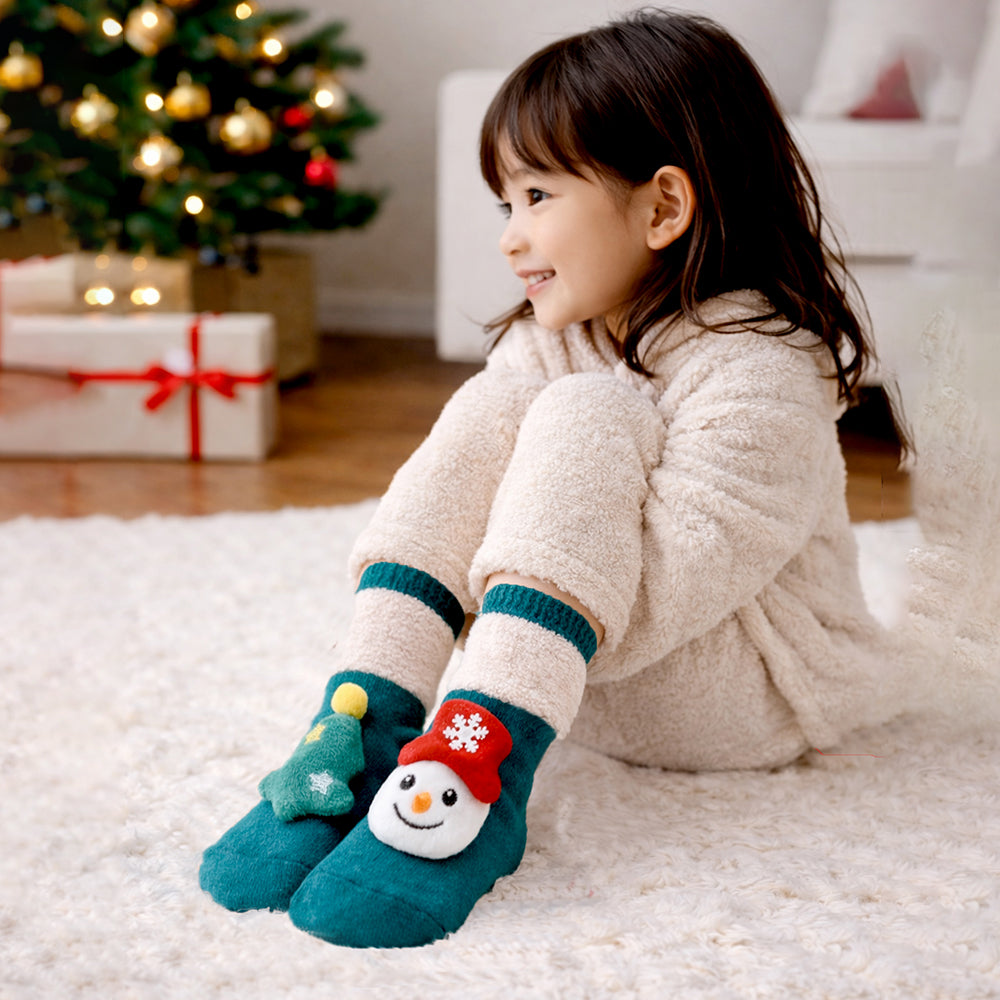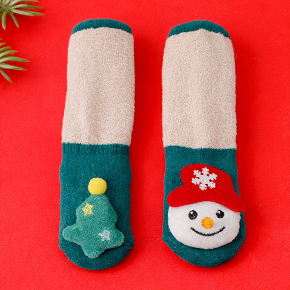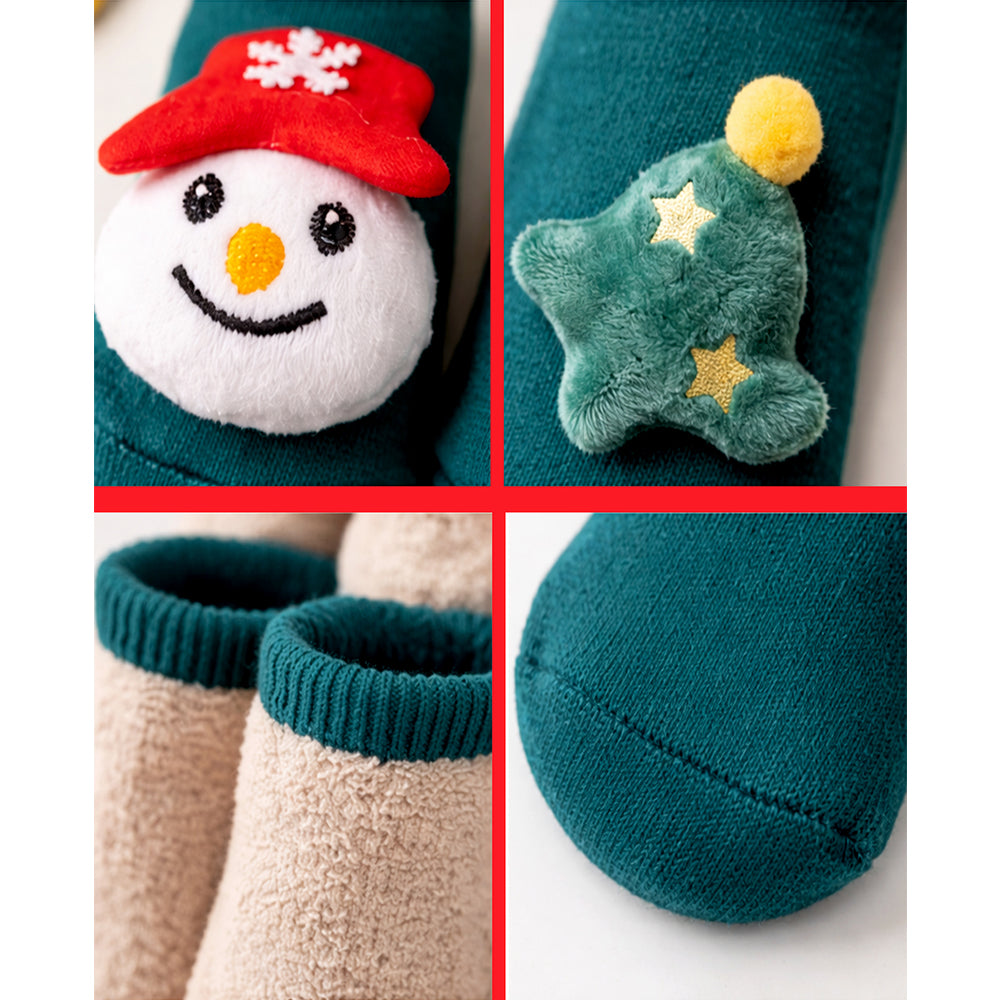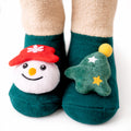 Green Snowman & Tree Christmas Themed Ankle Length Socks For Kids