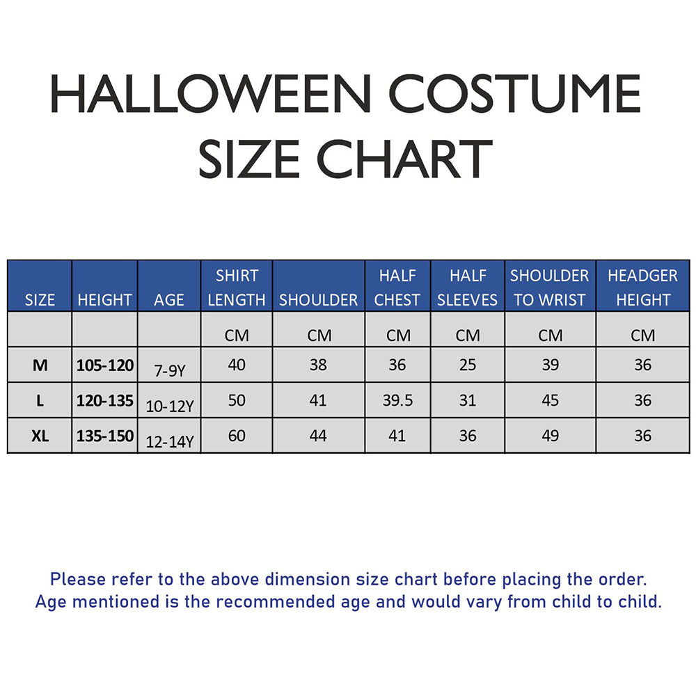 2.Age: This outfit is available for kids aged between 7-14yrs of age. Pls refer to the size chart.