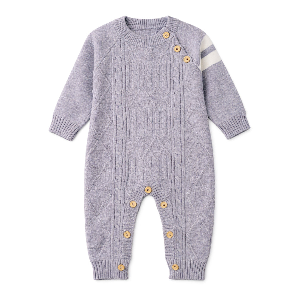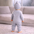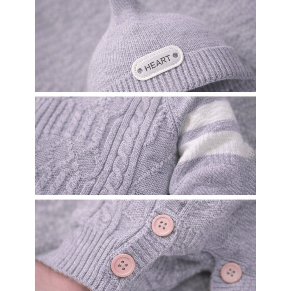 Grey White Stripes Full Sleeves Jumpsuit Winter Romper with Cap for Tiny Toddlers