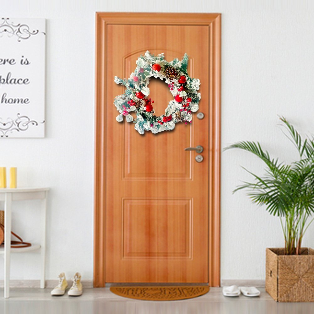 1) Classic Design : This beautiful bushy and snowy Wreath combination of white, Wooden pine cones and red cherries just adds all the snowy magic to any space. It's unique and beautiful and would add volume and magic to any space where it is put up. Just open up the branches for a more fuller and enticing look.