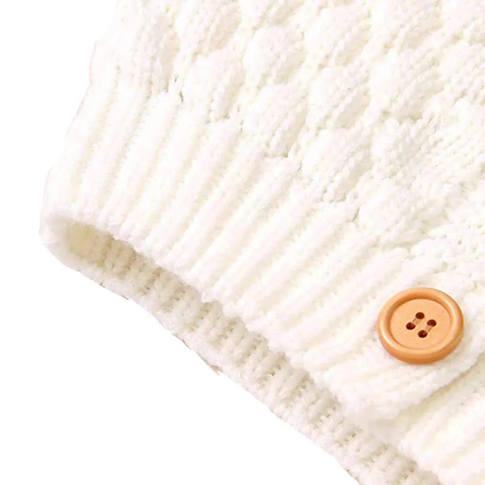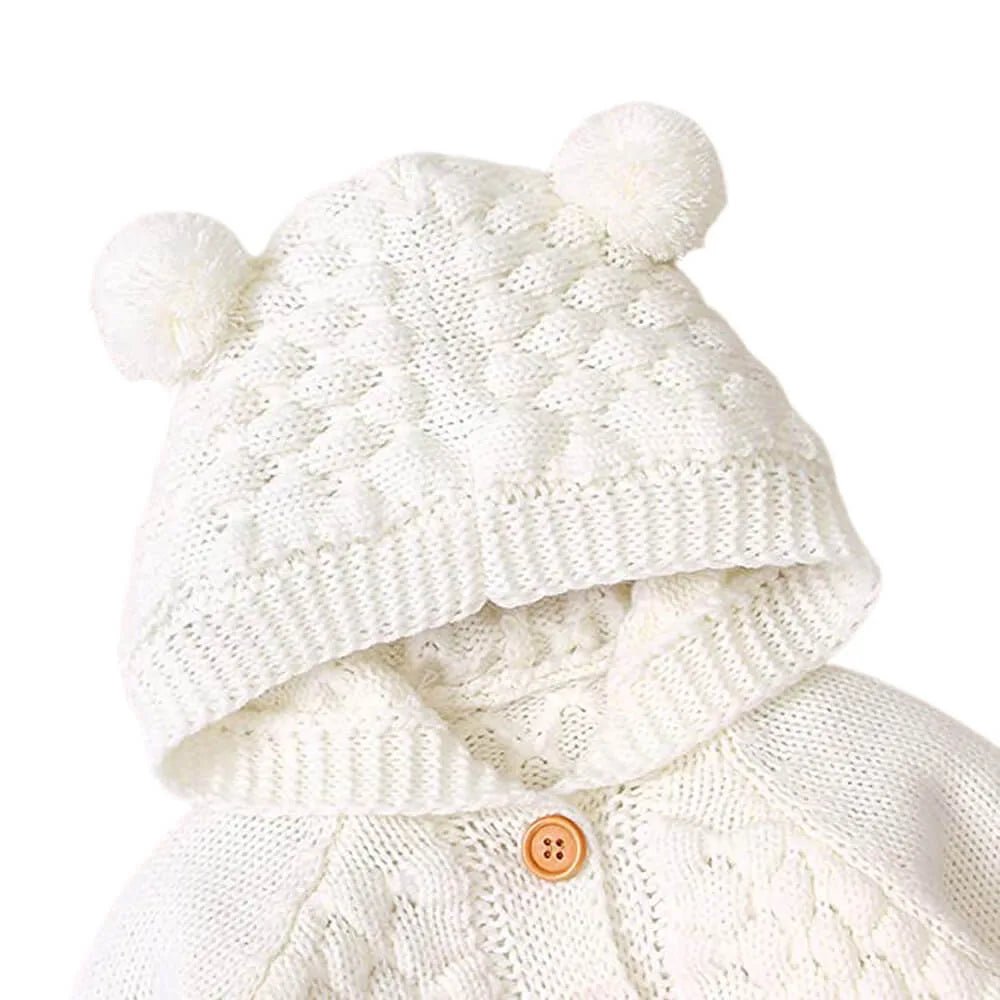 Infants Ivory White Knitted Cardigan Sweater with Pom Pom Hoodie