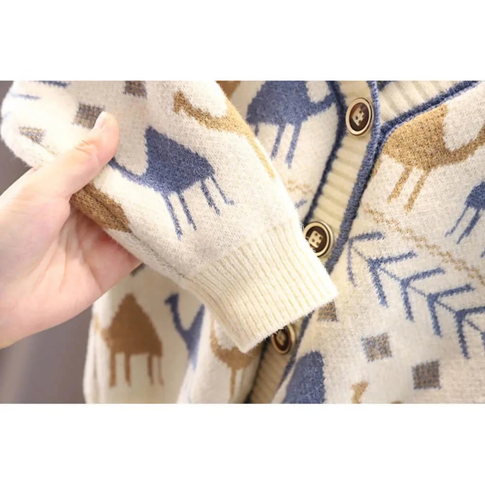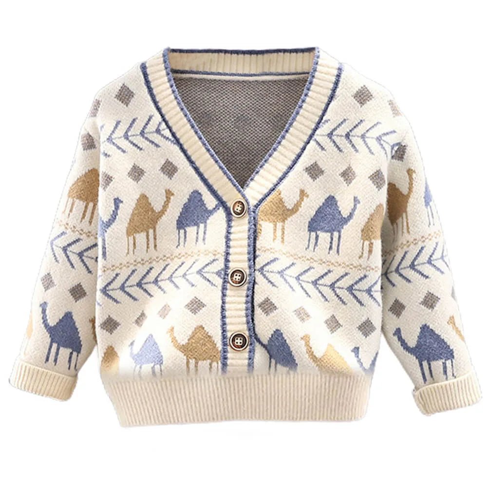 Kids Cream Camel Troop, Cardigan V neck Sweater