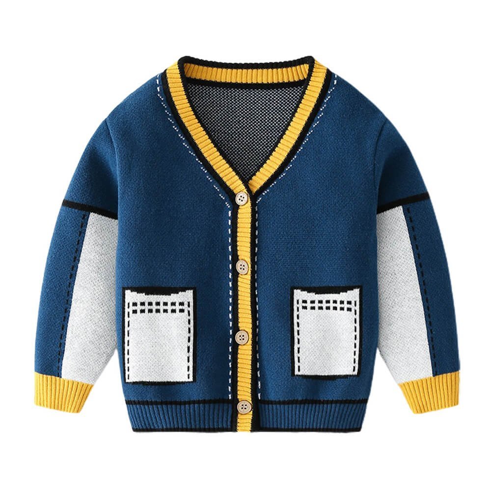 Kids Navy Blue with Striking Mustard Stripes Cardigan Sweater V neck