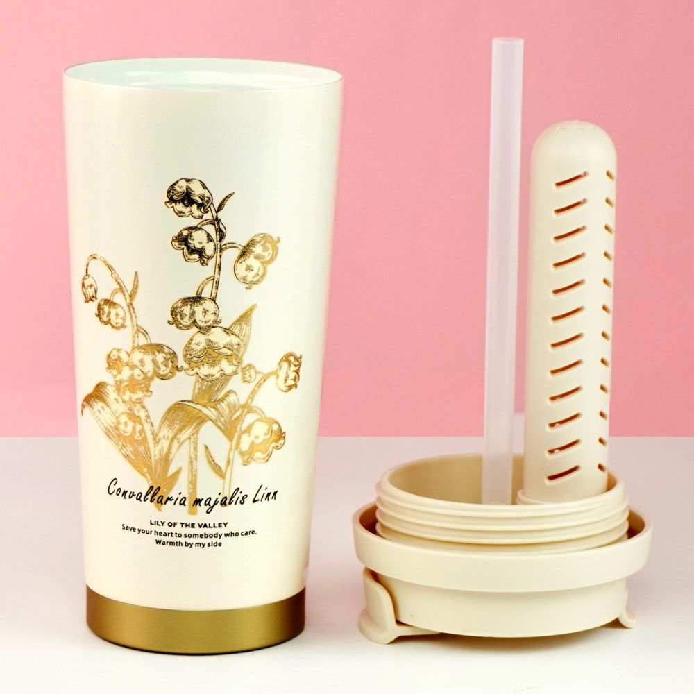Lily Gold Stainless Steel premium Insulated Detox Infuser Bottle with Tea and Fruit Infuser attachment, 520ml