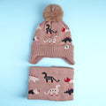 Little Surpise Box , 2pcs Brown Dino themed Beanie Winter Cap with matching Neck Cuff style Muffler for Kids, 5-15 Years