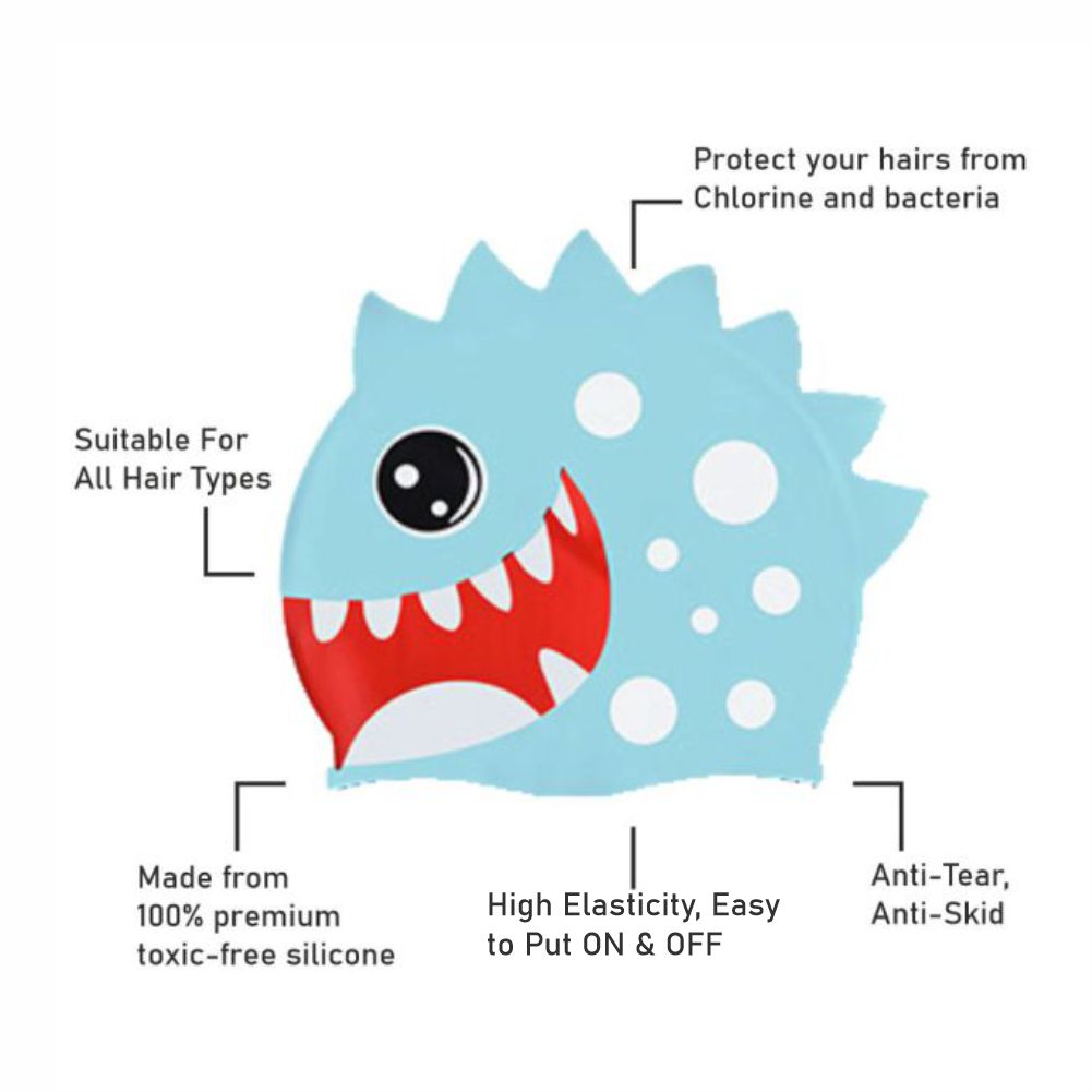 3d White Polka Mint , Silicone Kids Swim Cap,  5 years -15 years