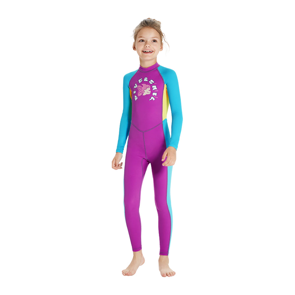 Full Length Dive Mauve Mermaid Color Block Printed Kids Swimwear In Upf 50+ Fabric