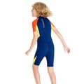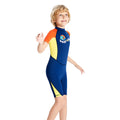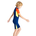 Knee Length Dive Navy & Orange Printed Kids Swimwear In Upf 50+ Fabric
