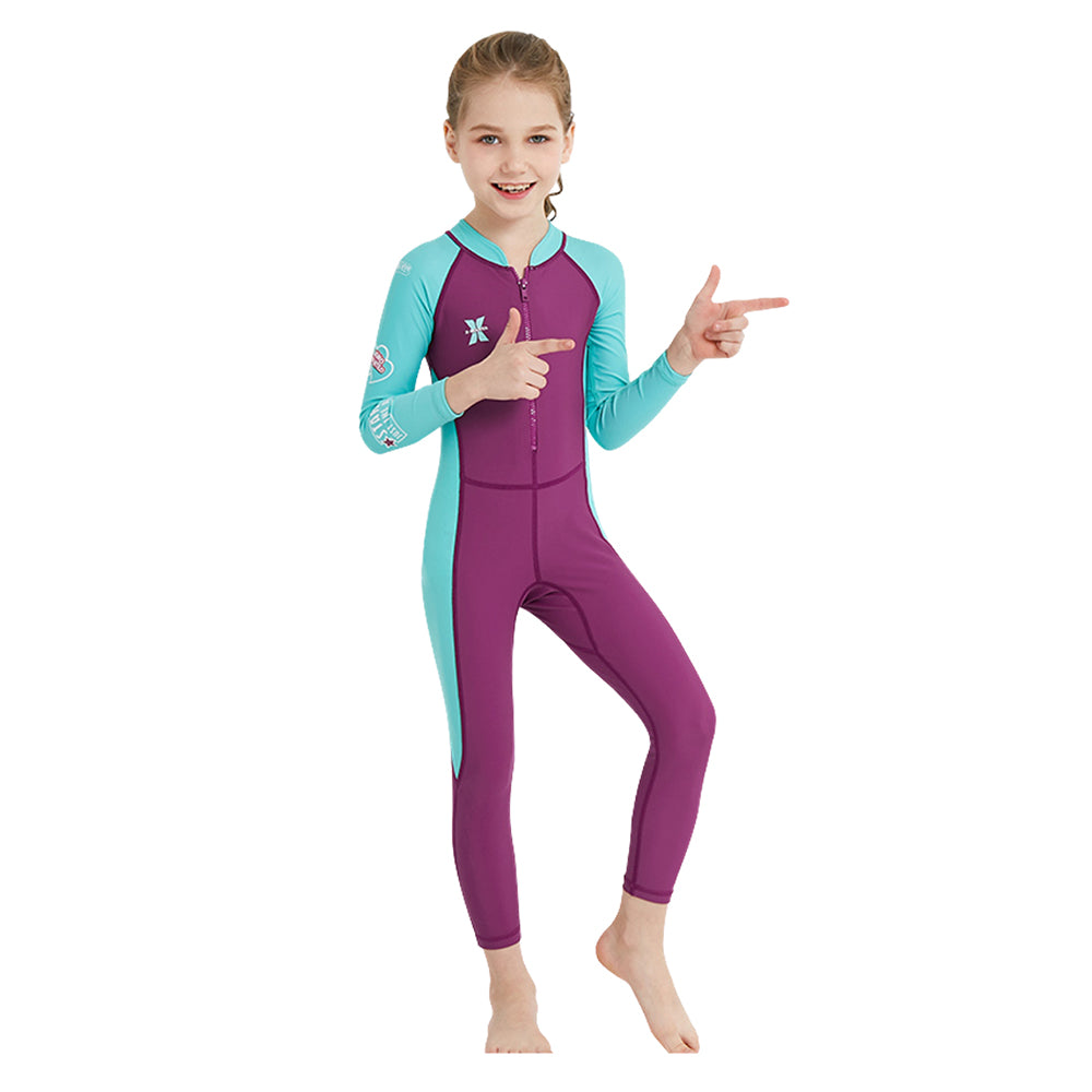 Maroon Mint Quote Sleeves Full Lenth Kids Swimwear With Upf 50+ Feature