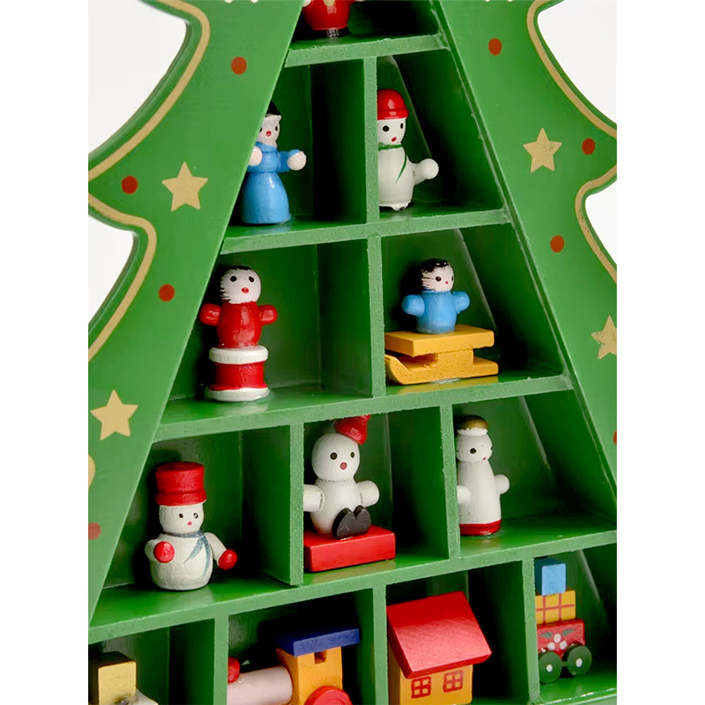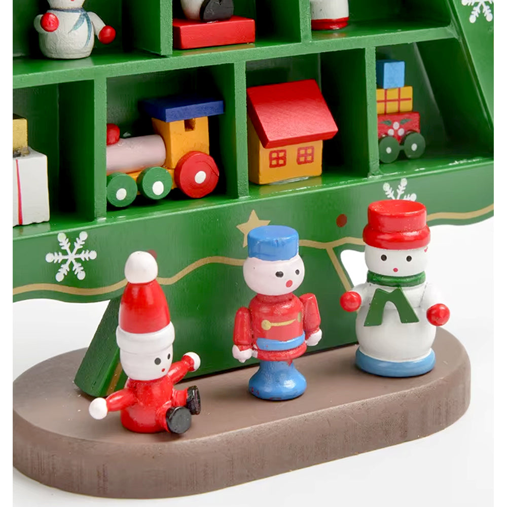 Checkered Shelf Green Wooden Christmas Tree with Mini Figurines