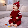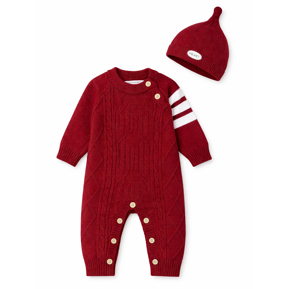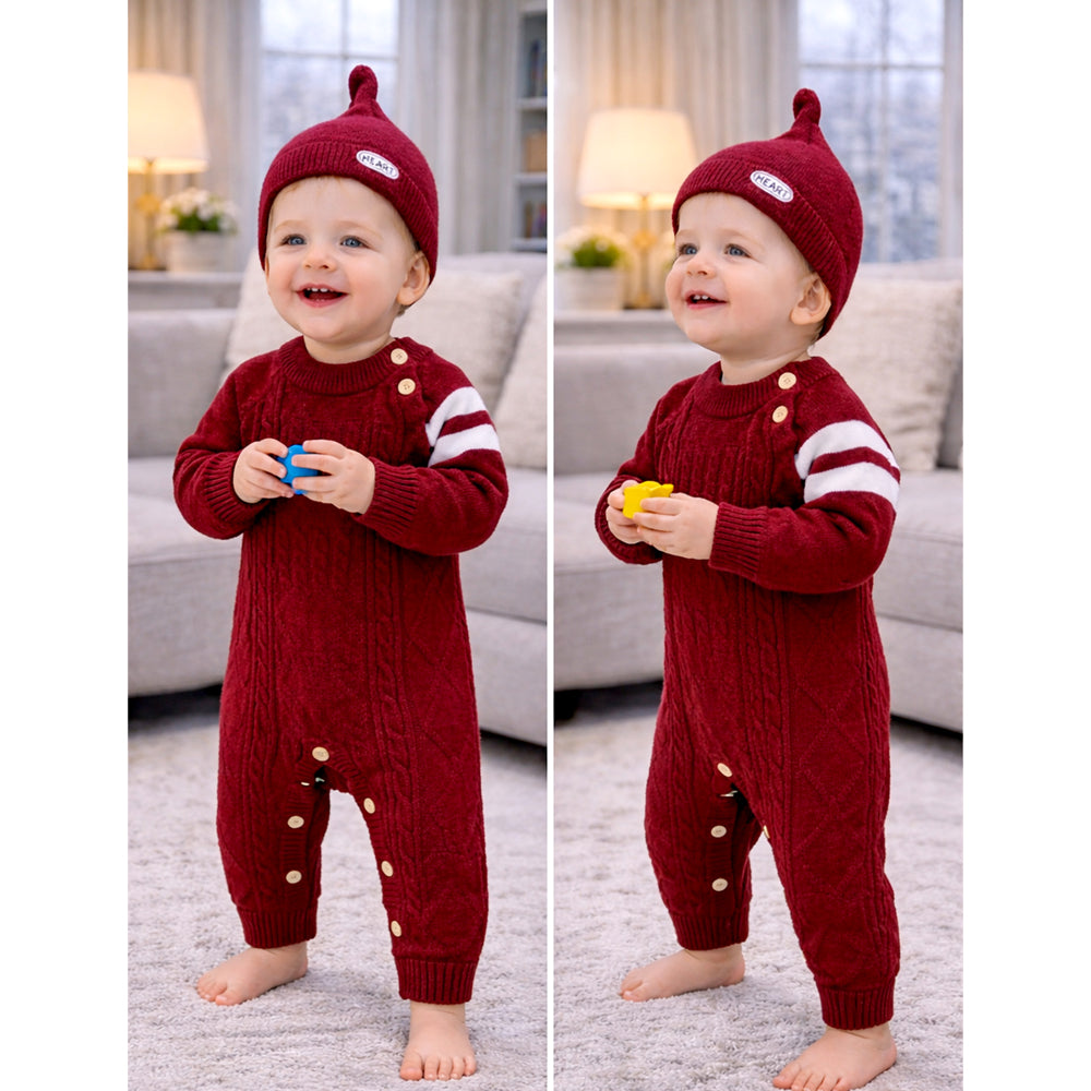 Maroon White Stripes Full Sleeves Jumpsuit Winter Romper with Cap for Tiny Toddlers