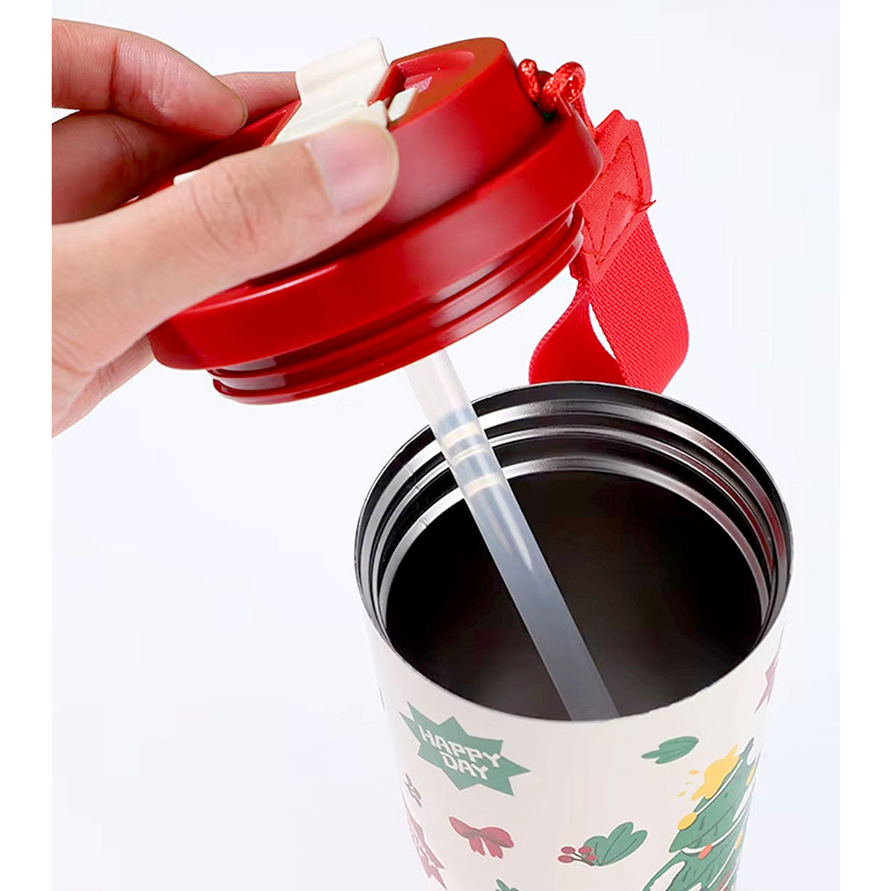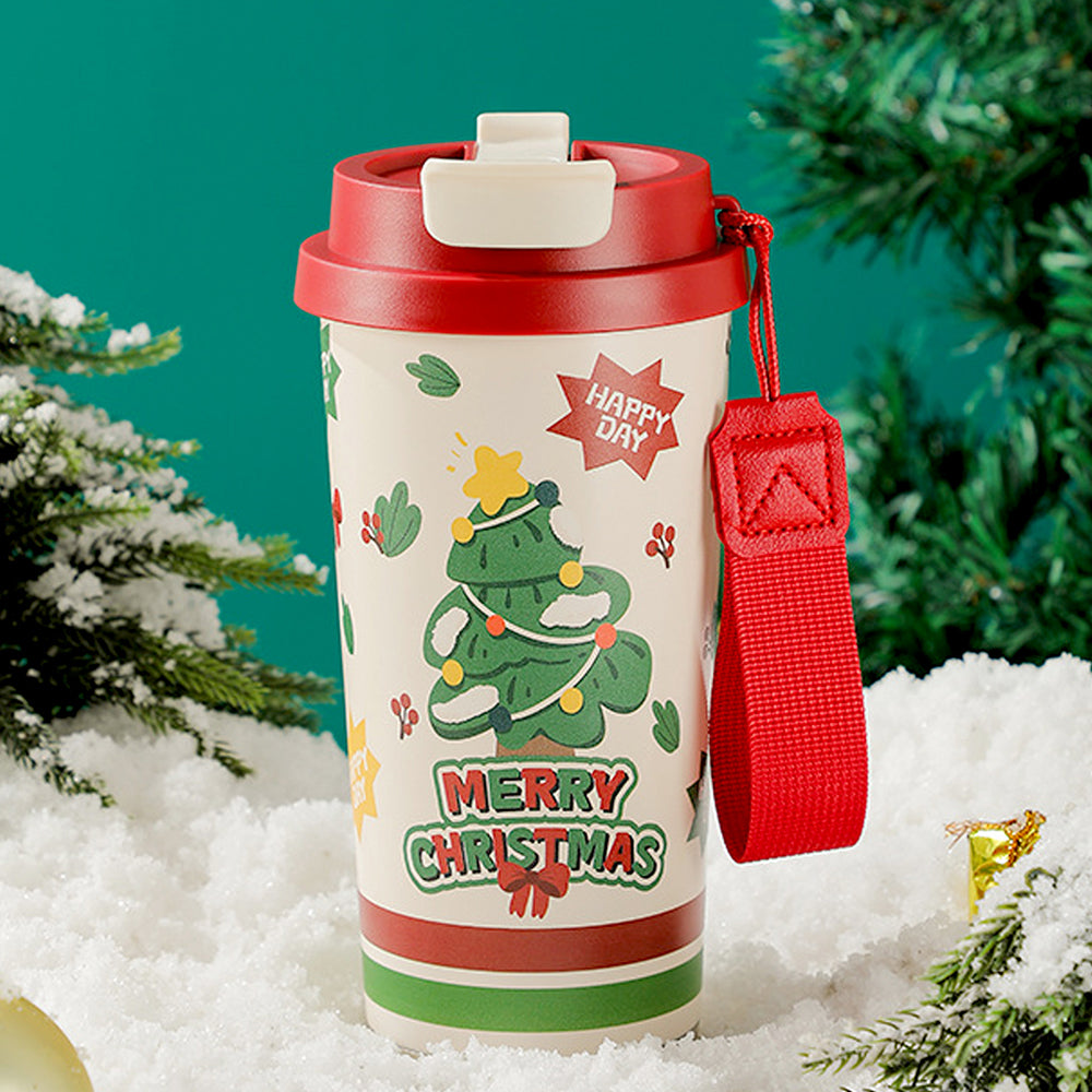 Merry Christmas Tree, xmas themed, stainless steel Coffee/Water Tumbler Bottle, 500ml with free cleaning brush