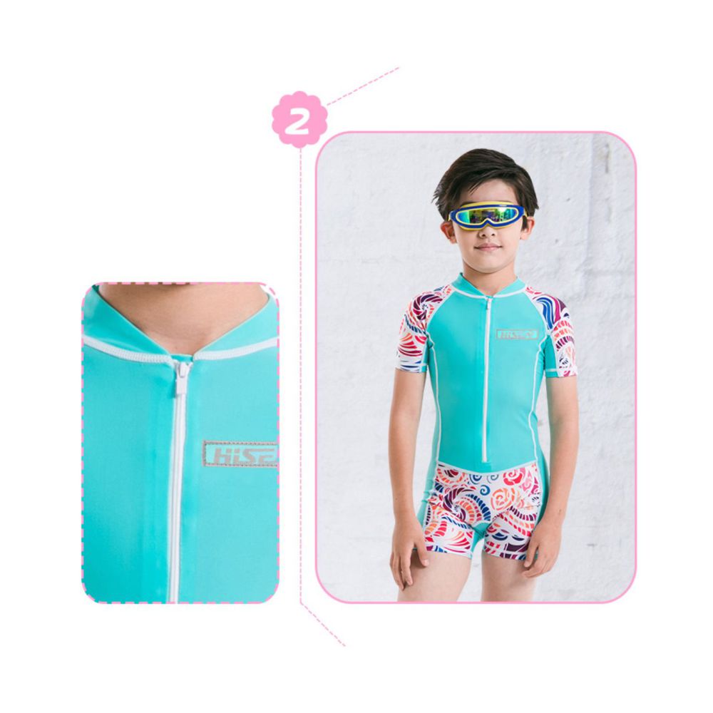1. Fit Type : Comfortable And High Stretch knee length Covered Style Swimwear To provide all The Comfort While Swimming. This Piece Has Front Zip Which Gets Easy For The Child To Zip And Unzip While Wearing And Removing The Suit.