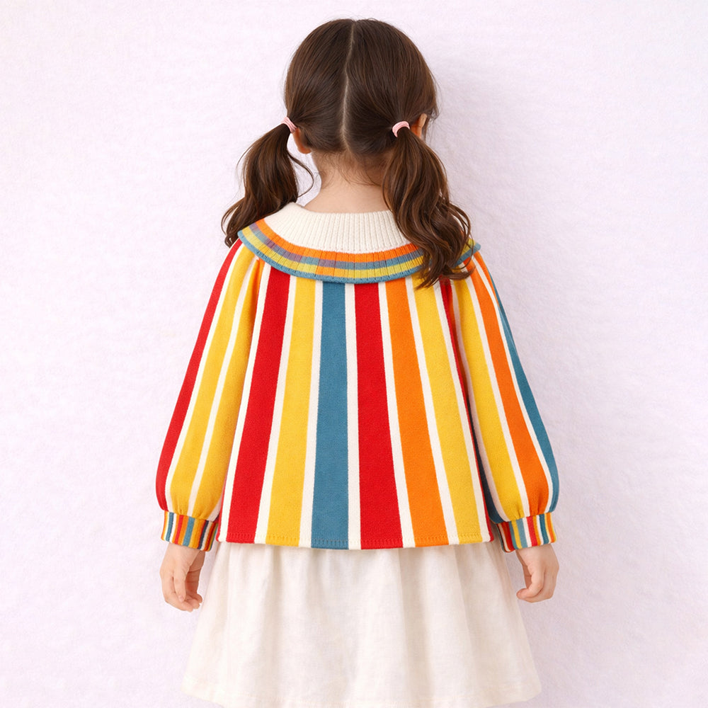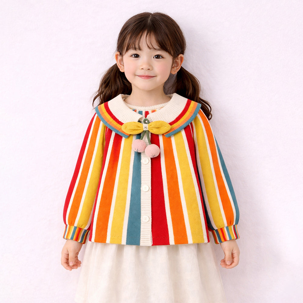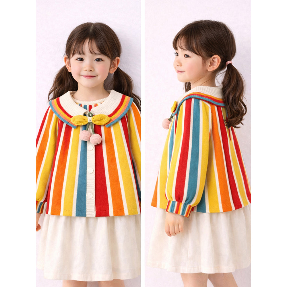 Multi-Color Stripes Cardigan with Bow & Pompom, Winter Cardigan Sweater for Kids